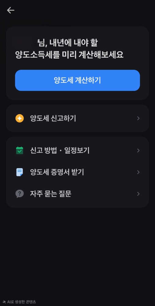 - [양도소득세 조회하기] 클릭